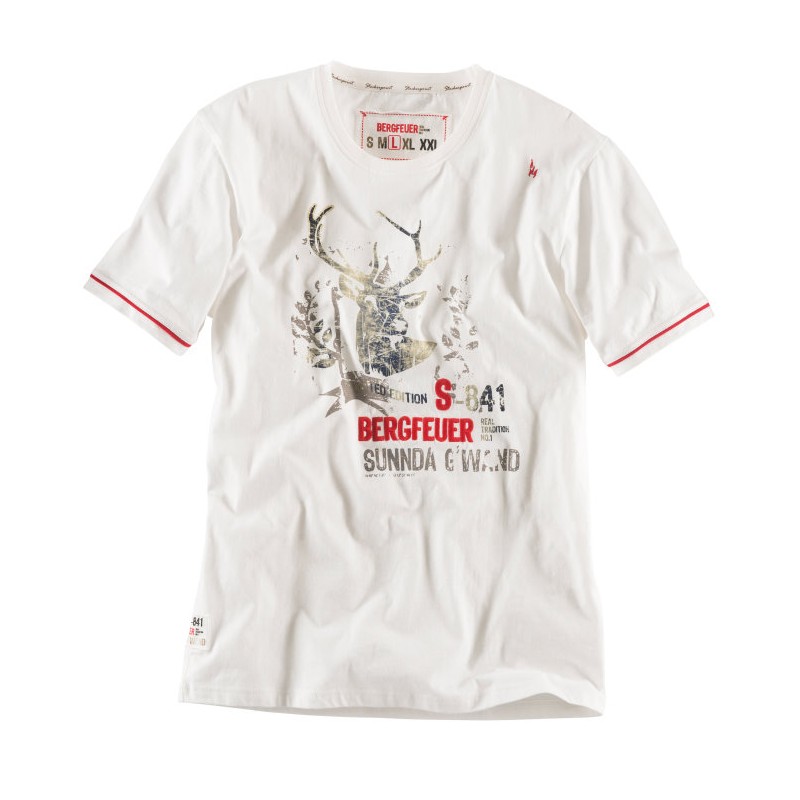 Das weiße, moderne Trachtenshirt Blaze King ist eine frische Abwechslung zum normalen Trachtenhemd. Ein Absoluter Hingucker, des weißen Trachtenshirts, ist der flippige Hirschmotiv-Aufdruck, der mit roten Stickereien kombiniert wird. An den kurzen Ärmeln, des weißen Trachtenshirts, spiegelt sich die rote Farbe in Form einer Paspel wieder. Das weiße Trachtenshirt Blaze King ist ein Kurzarmshirt, das durch seinen flippigen Aufdruck, dem Träger eine junge, sportliche Note verleiht.